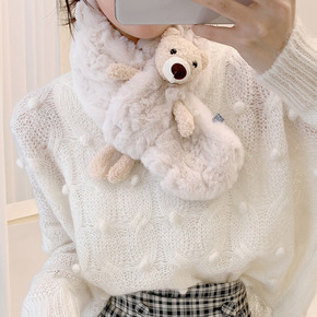 东大门时尚珍珠毛绒小围巾女ins冬季仿兔毛毛领加厚...