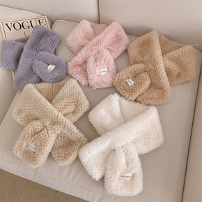 围巾女冬季韩版仿兔毛围脖保暖加厚小百搭纯色学生交叉...