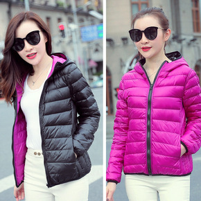 【双面穿】羽绒服女轻薄短款白鸭绒外套大码时尚连帽两...