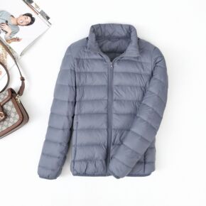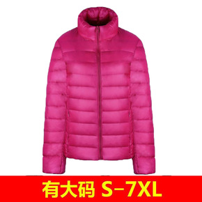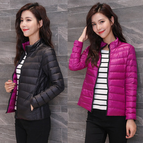 跨境羽绒服女轻薄韩版时尚立领短款加肥加大码白鸭绒长...