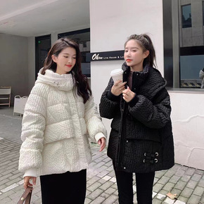 韩国东大门羊羔绒外套男女情侣两面穿羽绒服女短款宽松...