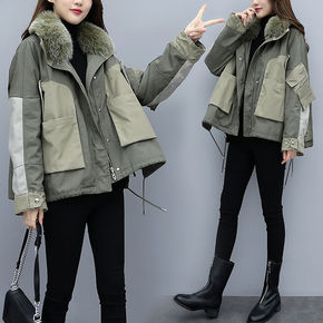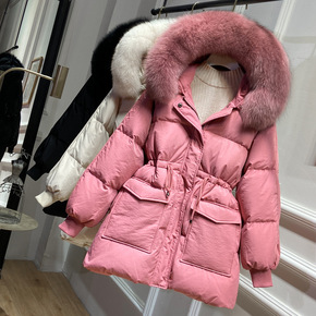 韩版狐狸毛大毛领羽绒服短款2021冬季新款时尚保暖...