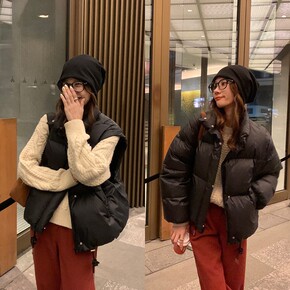 2021年韩版宽松羽绒服女围巾短款小个子圆领面包服...