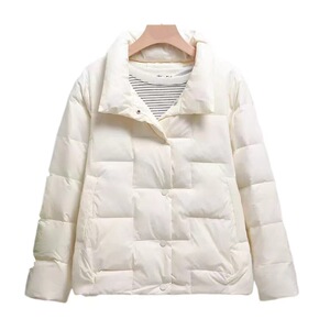 羽绒服女2022年秋冬新款轻薄短款立领加厚白鸭绒宽...