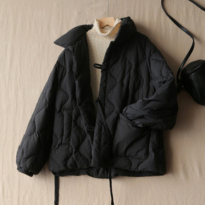 2022冬季新款韩版轻薄设计感系带羽绒服女保暖白鸭...