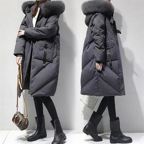 羽绒服女2021新款韩版中长款加厚过膝女士羽绒服连...