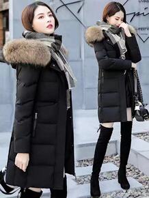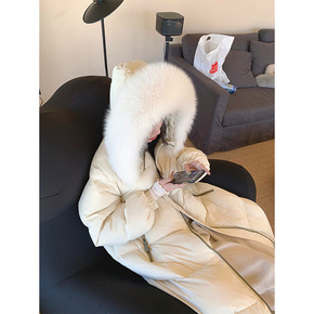 反季福利! 篙端中长款连帽过膝90白鸭绒加厚羽绒服...