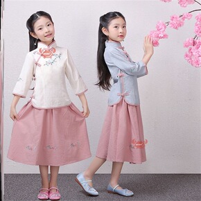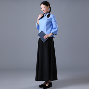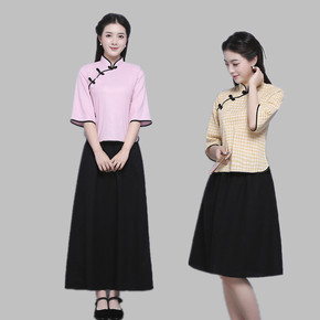 汉服女中国风古装仙女服复古旗袍上衣民国风棉麻刺绣改...