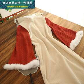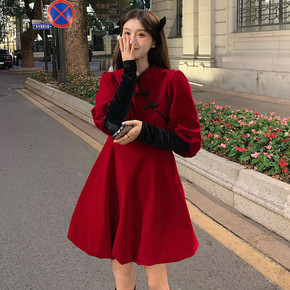 红色圣诞战袍改良金丝绒旗袍连衣裙秋冬季年轻款少女民...