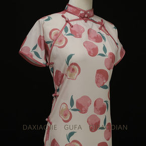 夏季新款法式旗袍改良版2021款桃子方领花扣双襟全...