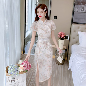 夏季新款民国风复古旗袍改良版连衣裙显瘦气质甜美少女...
