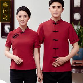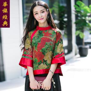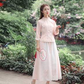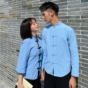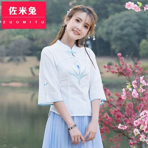 民国新式唐装复古改良棉麻旗袍上衣中袖少女素色唐装半...