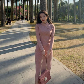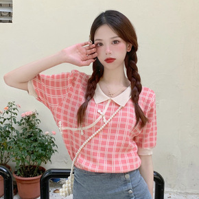 【定制】改良民国风旗袍格子短袖针织衫女夏季2021...