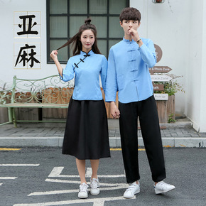 民国风新款春季学生毕业班服五四青年演出服棉麻复古女...
