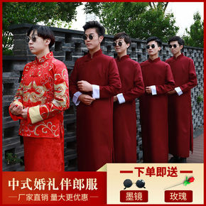 中式结婚礼服伴郎服男士长衫长袍大褂民国唐装古装相声...