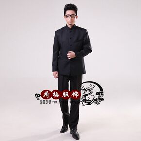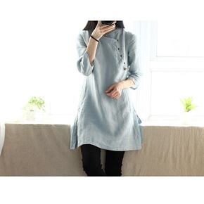 粗棉麻布料长衫民国装中式长袍相声大褂盘扣古装服装男...