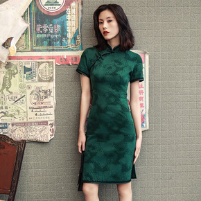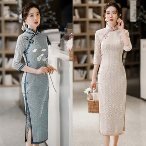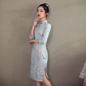 古法旗袍四面弹单层清新中长款日常旗袍改良版七分袖少...