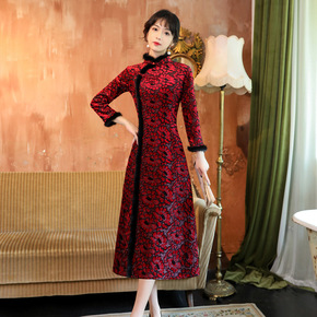 秋冬款改良旗袍加厚长袖2021新款复古气质民国风冬...