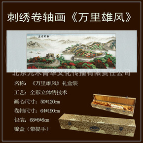 万里雄风手工裱刺绣长城卷轴画苏绣装饰画外事商务字画...