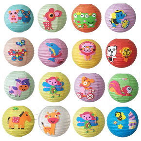 厂家批发卡通贴纸圆形纸灯笼儿童玩具民间工艺元宵节纯...