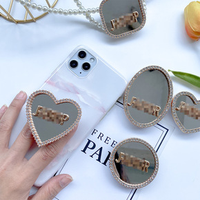 ins爱心镜子气囊支架创意J标圆形水钻圈懒人桌面式...