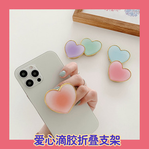 手机气囊支架 折叠滴胶电渡包边爱心女生手机支架 创...