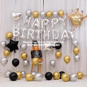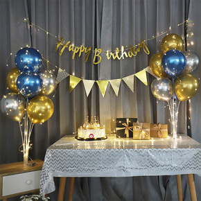 跨境金属气球生日套装 铬金银乳胶气球周岁生日装饰派...