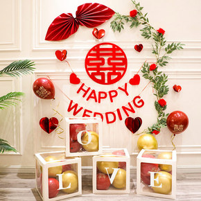 森系ins结婚喜字拉花气球套装婚房女方卧室装饰客厅...