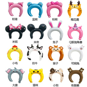 儿童卡通动物发箍头箍头扣铝膜气球地推扫码小礼品生日...