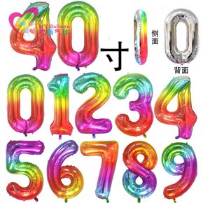 40寸瘦版大数字 果冻色 彩虹色 铝膜气球 生日派...