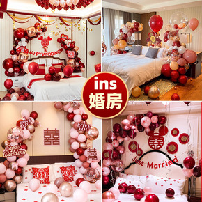 气球房间红用品布置红婚房网红结婚卧室喜字婚礼婚庆印...