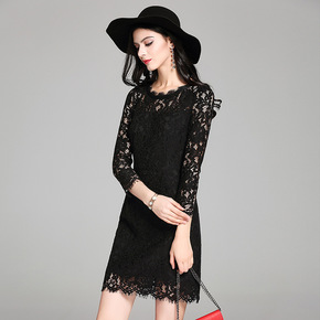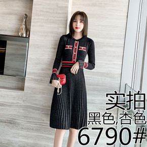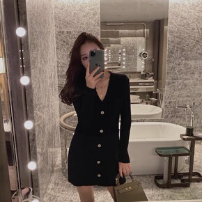 秋新款赫本风显瘦针织小黑裙女韩版小众领内搭毛衣连衣...