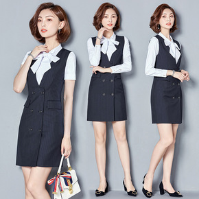 2021连衣裙女短袖气质职业套裙酒店美容院工作服显...