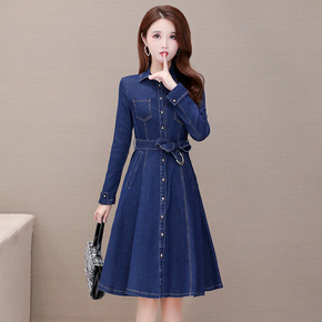 连衣裙新牛仔裙中长款收腰显瘦翻领A字裙气质百搭一步...