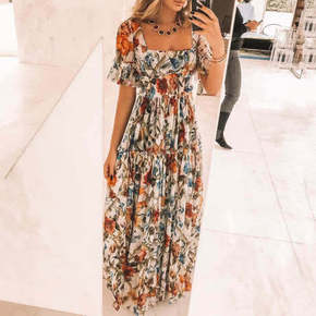 2021亚马逊欧美夏季ebay连衣裙性感一字肩V领...