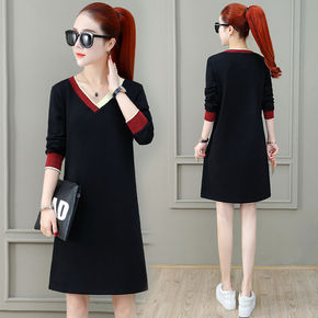 中长款连衣裙春秋韩版宽松女装2022新款时尚大码显...