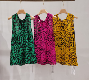 气质通勤22年夏性感女神豹纹印花桑蚕丝绑带三色背心...