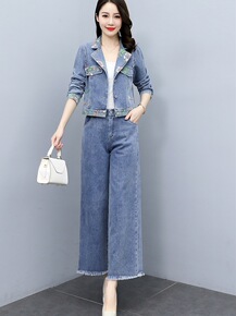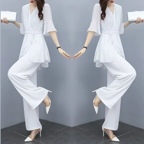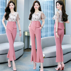 2021年新款春款女装夏季时尚阔腿裤套装休闲气质女...