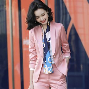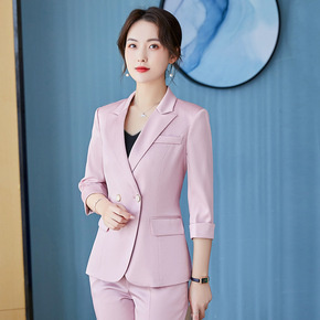 粉色西装套装女韩版2022春季新款时尚职业装气质女...