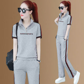 休闲运动套装女夏2021新款韩版气质女神洋气阔腿裤...