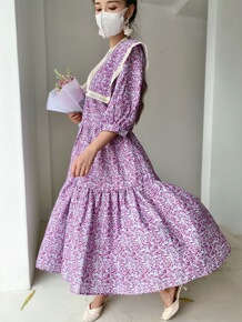 春夏好美~小清新碎花很绽放泡泡袖 连衣裙潮v领收腰...