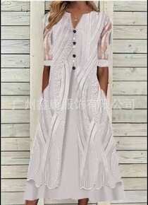 2022夏季新款连衣裙亚马逊通勤欧美时尚锻面长衣裙...