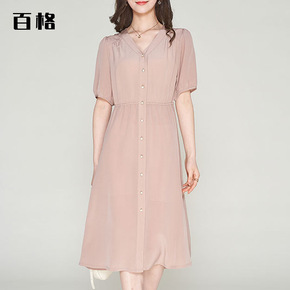 真丝连衣裙女2022春修身A字裙中长款桑蚕丝裙子法...