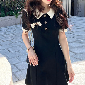 争品- “瘦瘦裙”polo黑色连衣裙女小个子夏季高...