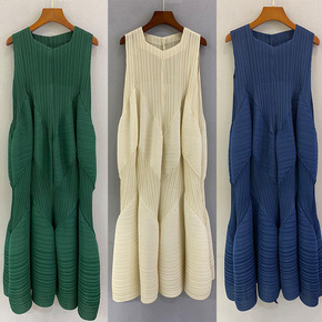 三宅经典手工压褶连衣裙女2022新款设计感花苞裙宽...