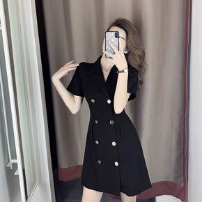 韩国东大门2022春夏新款简约系扣气质修身时尚娃娃...