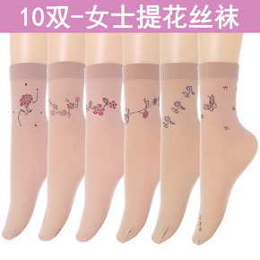 有跟中老年女士棉底丝袜中筒妈妈袜婆婆夏季薄款带跟耐...