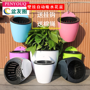 新款自动吸水懒人花盆 创意水培壁挂式圆形树脂绿萝塑...