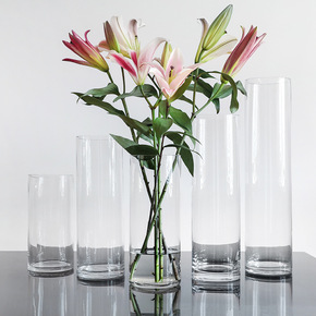 小口径直筒简约透明玻璃花瓶透明鲜花富贵竹水培 酒店...