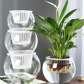 美轩透明花盆水培绿萝创意塑料花盆圆形现代简约小花盆...